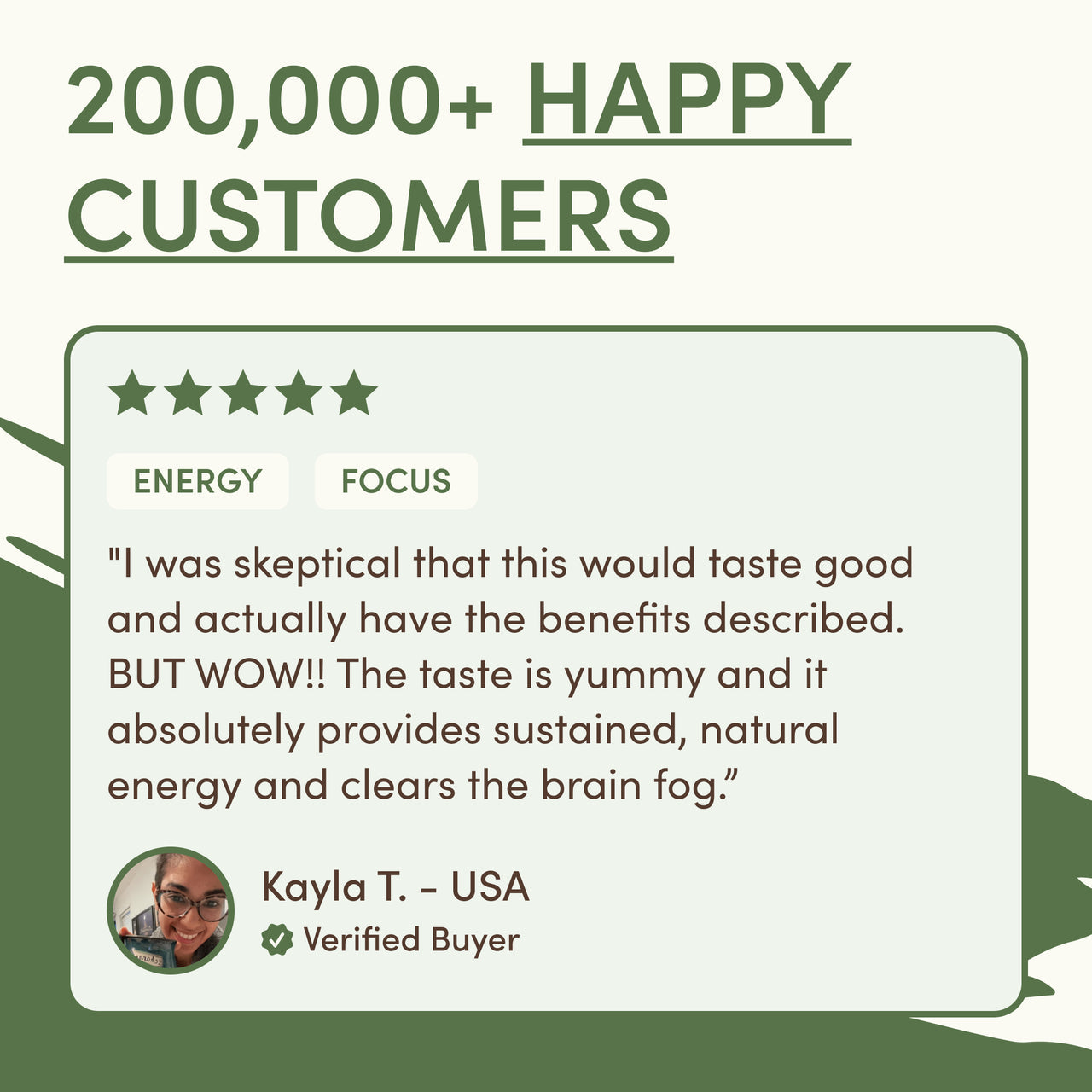 We may be biased because we like to drink Mushroom Matcha allday long. However, we recommend it first thing in the morning to getyour energy levels up, your focus turned ON, and your happiness atan all time high. lt's the perfect way to start the day. lt also worksamazing as an afternoon-pick-me-up. Not at all harsh like coffee, itscalm energy takes you smoothly right into the evening hours
